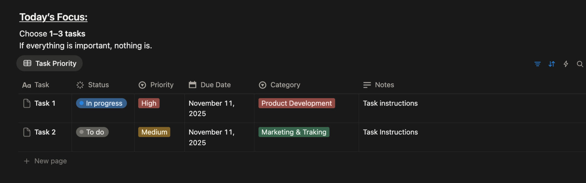 Only 1–3 priorities.
