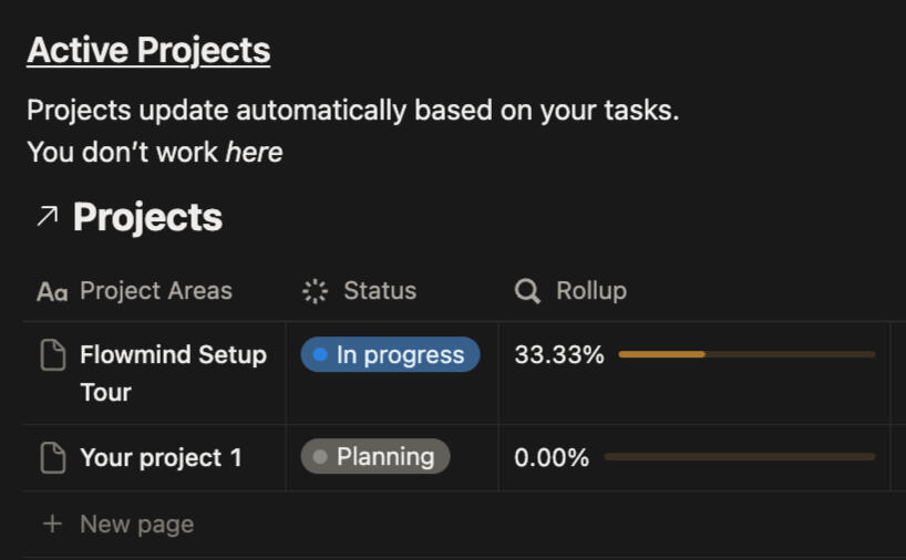 Tasks automatically update project status.