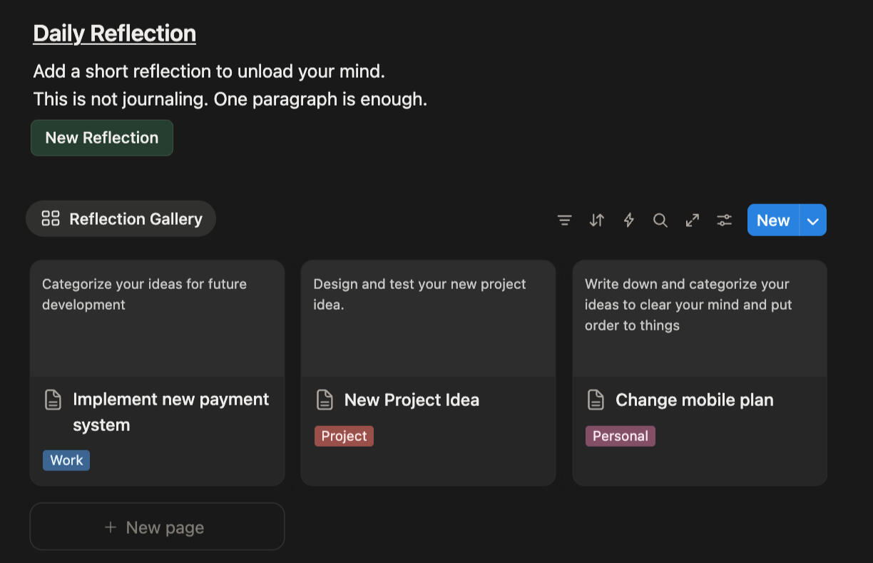 Ideas, notes, reflections live in the system, without asking for action.